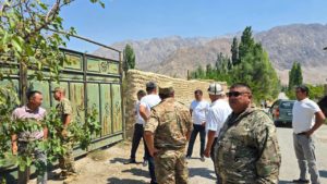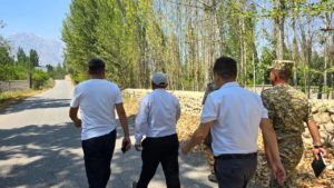 Баткен районунун аймагында мамлекеттик чек араны бекемдөө жана коопсуздукту камсыздоо максатында зым тосмолор менен тосуу иштери кызуу жүрүүдө. Бул иштердин жүрүшүн көзөмөлдөө үчүн бүгүн Баткен районунун акими тиешелүү мекеме-ишканалардын жетекчилери менен биргеликте аймактарга барып, аткарылып жаткан иштер менен жеринен таанышты.