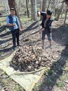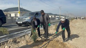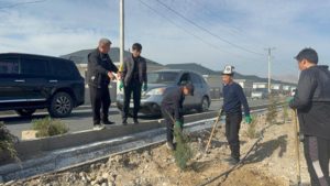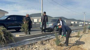 Жаңы Достук айылында жашылдандыруу иштери улантылып, арча көчөттөрү отургузулду. Ошондой эле бак-дарактар акталып, сырдалды.