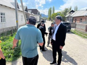 Жерине барган аким жарандар менен жолугуп, түшүндүрүү иштерин жүргүздү. Маалыматка ылайык, аталган көчө кеңейтилип, асфальт төшөө пландалууда.